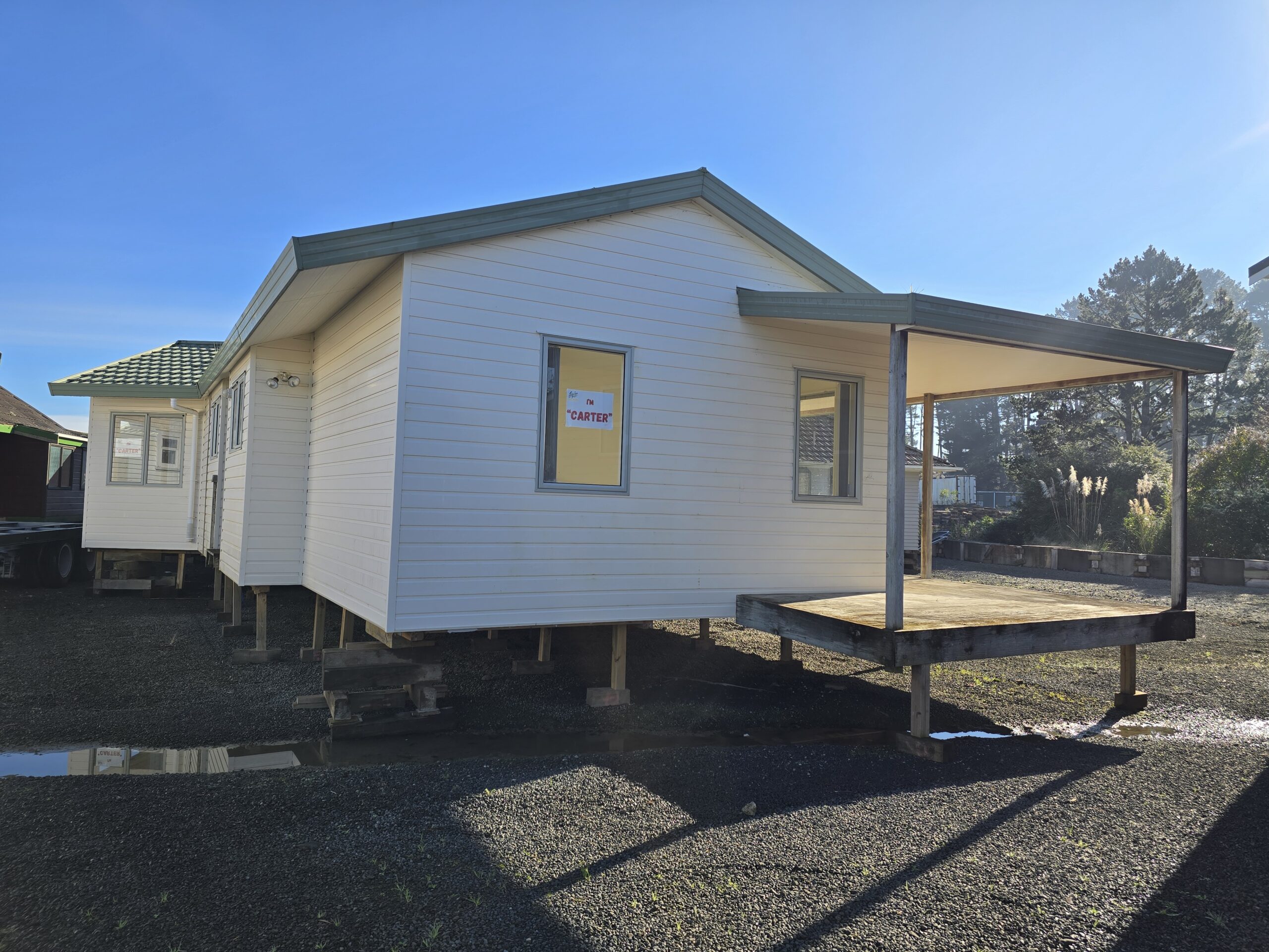 “Carter” is a large reasonably modern Group Home, compromising 3 bedrooms, 2 bathrooms , internal garage with palliside cladding, aluminium joinery & decro tin roof. Carter will be cut and transported in 3 sections.